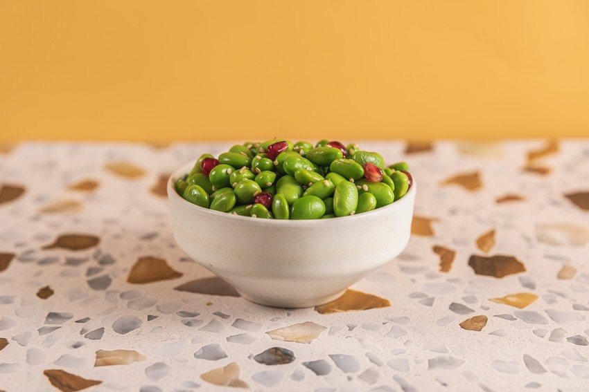 Mahi-mahi, edamame, gingembre mariné, salade de choux japonaise, concombre, cebettes, sésame, sauce soja Heiko