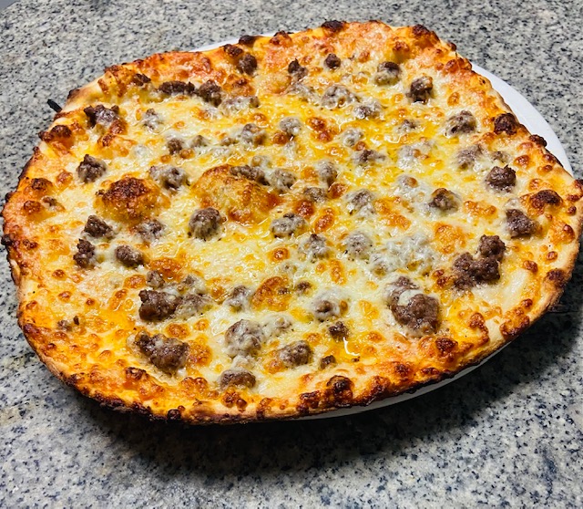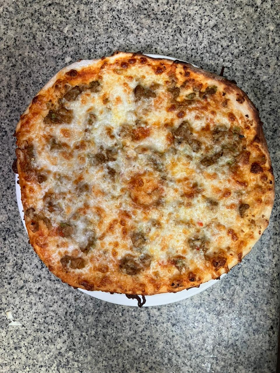 Sauce tomate, viande hachée angus, oignons, mozzarella