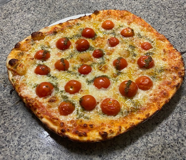 Sauce tomate, chorizo, oignons, mozzare…